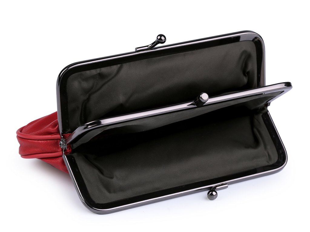 Peněženka vás příjemně překvapí spoustou kapes. Kožený potah má nahoře zakončený kvalitním kovovým rozevíracím rámečkem s dvojitým zapínáním. Ukrývá 2 oddělené kapsy. Na zadní straně peněženky je ještě malá plochá kapsa na zip. Poslední skrytá kapsa je na spodní straně peněženky, také se zavírá na zip.
