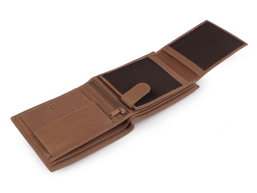 Luxusní pánská peněženka z pravé kůže má velice kvalitní provedení a chytrý design. Je pěkně a přehledně uspořádaná, lehká a příjemná na dotek. Povrch kůže je matný.