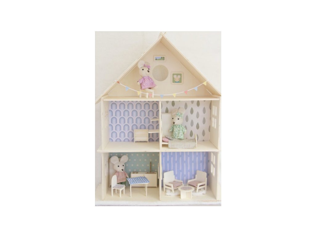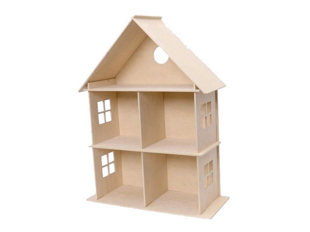 Dřevěný domeček pro panenky je dodáván v rozloženém stavu. Můžete ho dozdobit technikou scrapbooking, decoupage nebo jej domalovat akrylovými či temperovými barvami, popisovači, glitrovými lepidly a dalšími materiály.