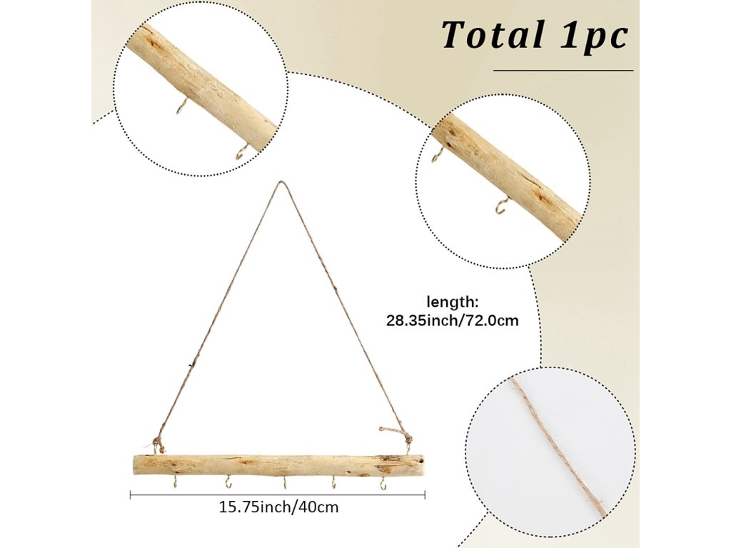 Tento věšák z přírodního dřeva je ideálním základem pro vaše DIY projekty. Díky robustnějšímu provedení a pevnému jutovému lanu je skvělou volbou pro tvorbu stylových nástěnných instalací, které vnesou do interiéru kus opravdové přírody. Každý kus je originál s nezaměnitelnou texturou dřeva.