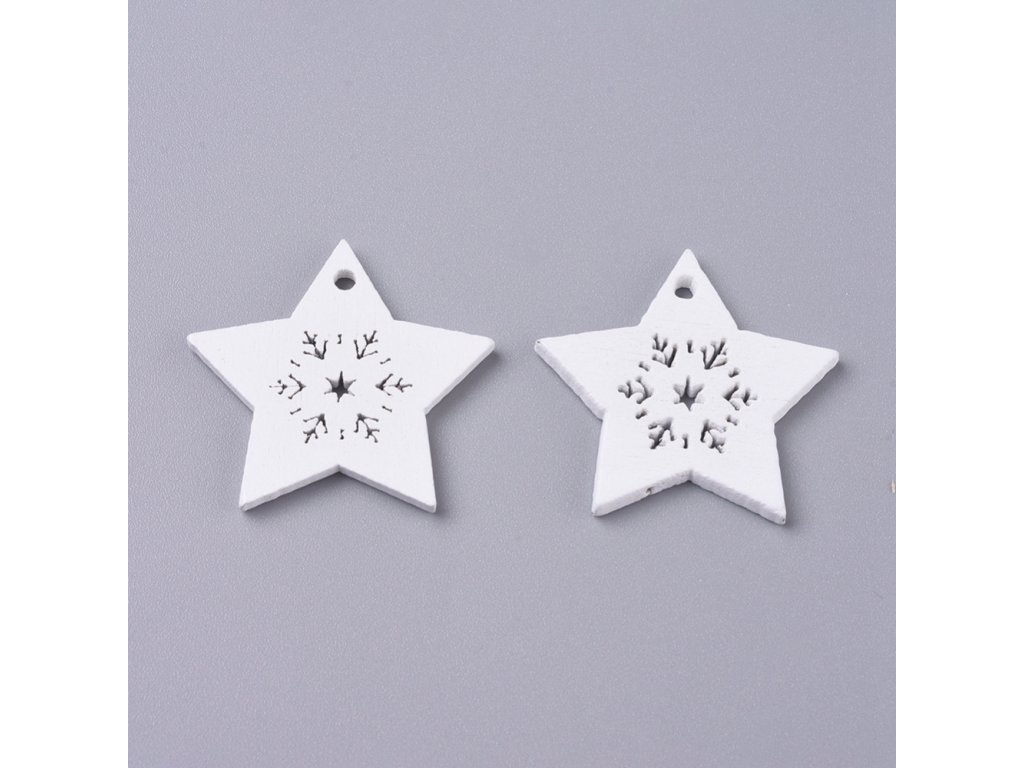 Dřevěné HVĚZDIČKY 29x30mm - zimní motiv (10ks)