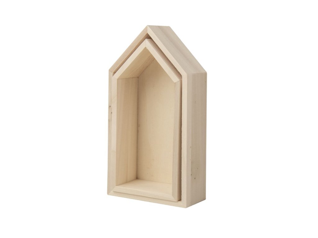 Dřevěné rámové domečky jsou originálním způsobem, jak vystavit miniatury, sběratelské předměty nebo drobné dekorace na stěnu. Vhodné k malování a dekorování různými výtvarnými technikami.