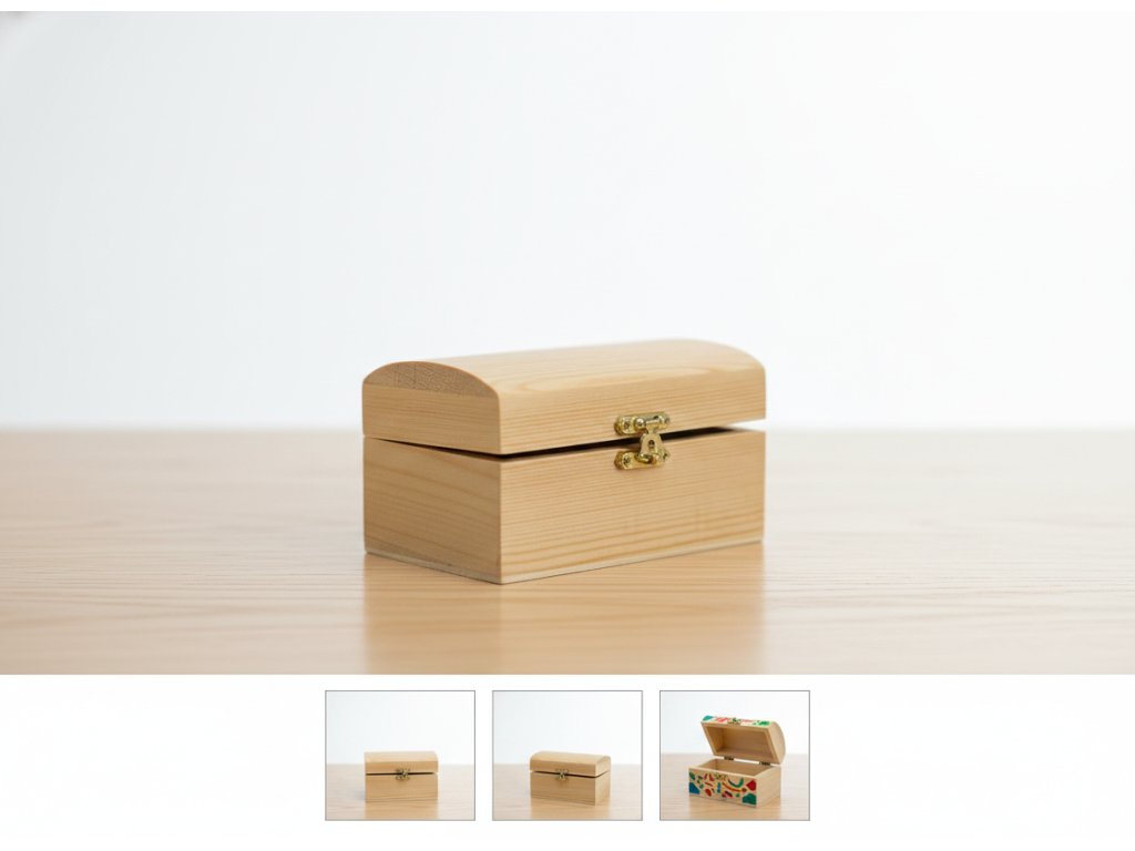 Obdélníková dřevěná krabička v přírodní úpravě určená k dekorativnímu dotvoření.