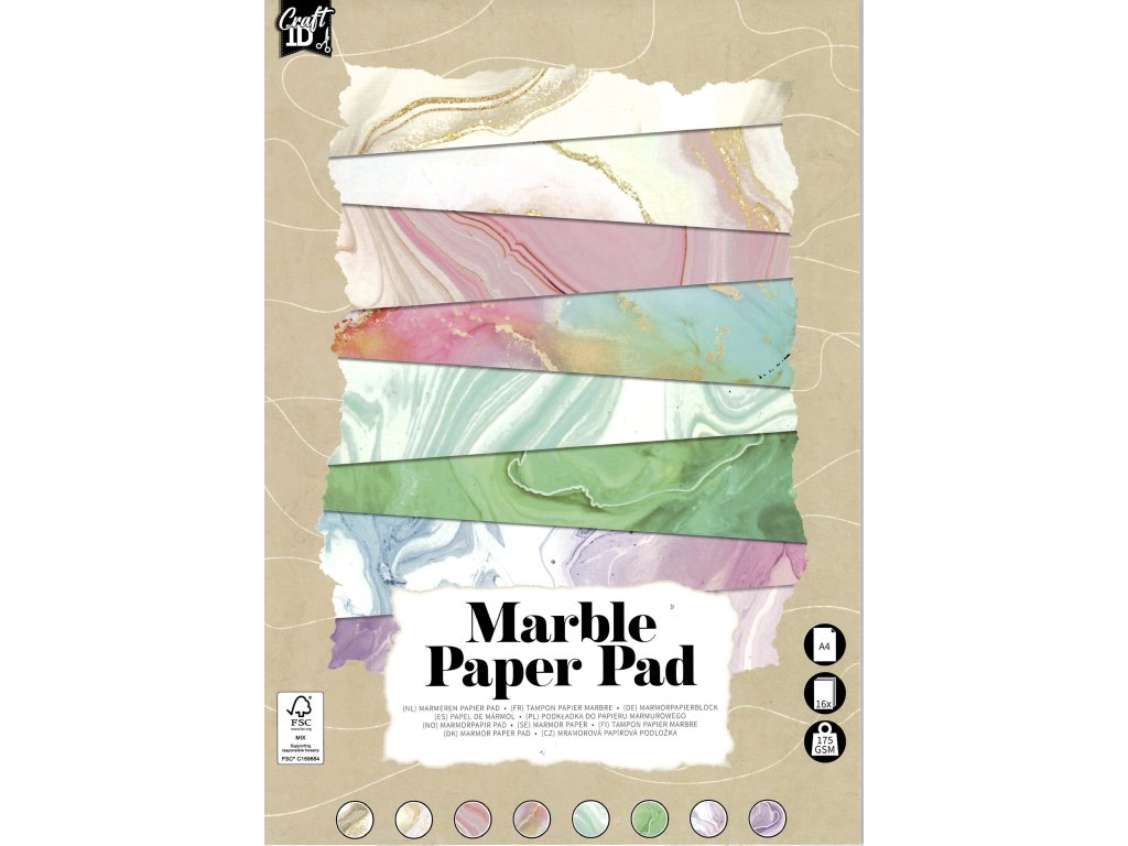 - Mramorový papír: Papír s potiskem, který napodobuje vzhled přírodního mramoru. Může mít různé barevné variace a intenzitu vzoru.