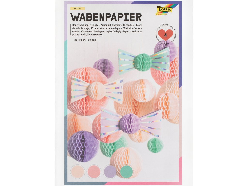 Plástvový papír je speciální, předem nařezaný papír, který po roztažení vytvoří nádhernou prostorovou (3D) voštinovou strukturu připomínající včelí plástve. Každý arch se skládá z mnoha (zde konkrétně 30) slepených vrstev, které umožňují vznik tohoto fascinujícího objemu.