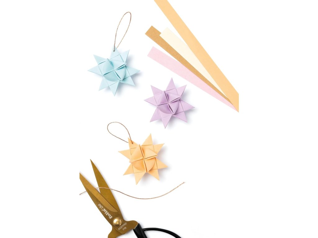 Proužky v pastelové barvě na výrobu hvězd. Velmi pěkná dekorace.