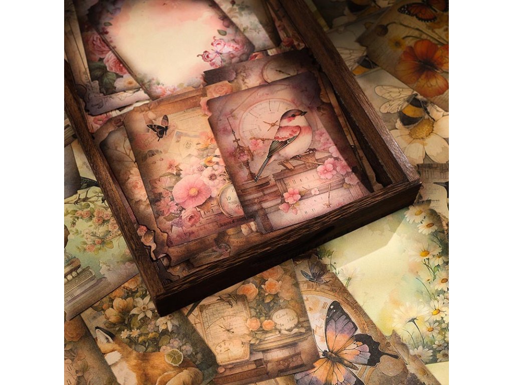 Vintage papír - 30 ks. Vhodný na výrobu přáníček, scrapbook a další tvoření.