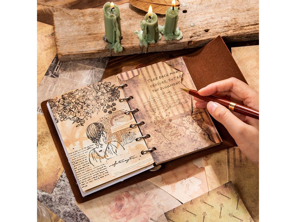 Vintage papír - 60 ks. Vhodný na výrobu přáníček, scrapbook a další tvoření.