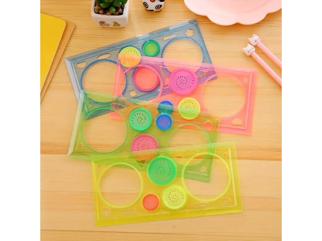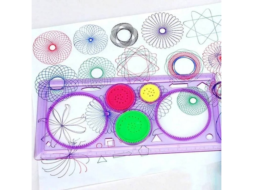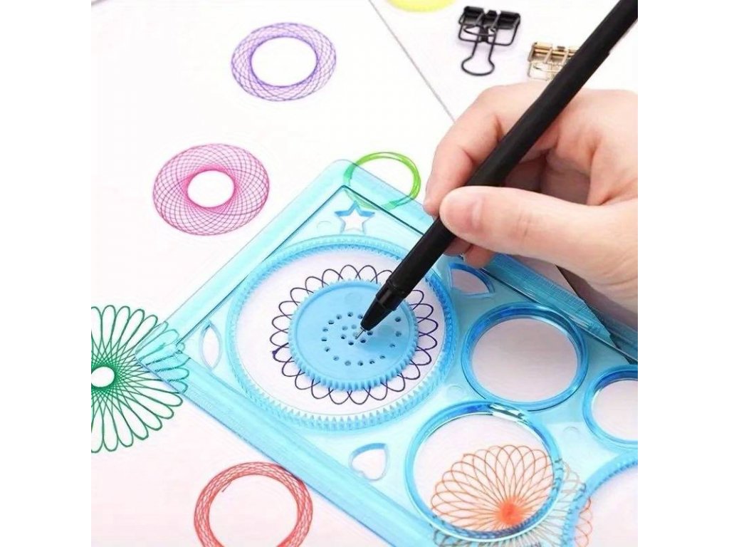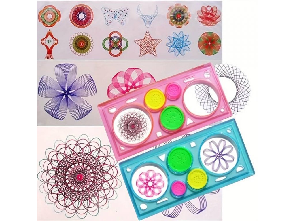 S pomocí šablon a ozubených kol se děti naučí rýsovat a tvořit nejrůznější vzor. Spirograph pro kreslení barevných spirál vás vrátí do dětství nebo vaše děti si s ním užijí neuvěřitelné hodiny zábavy při kreslení různých barevných spirál.