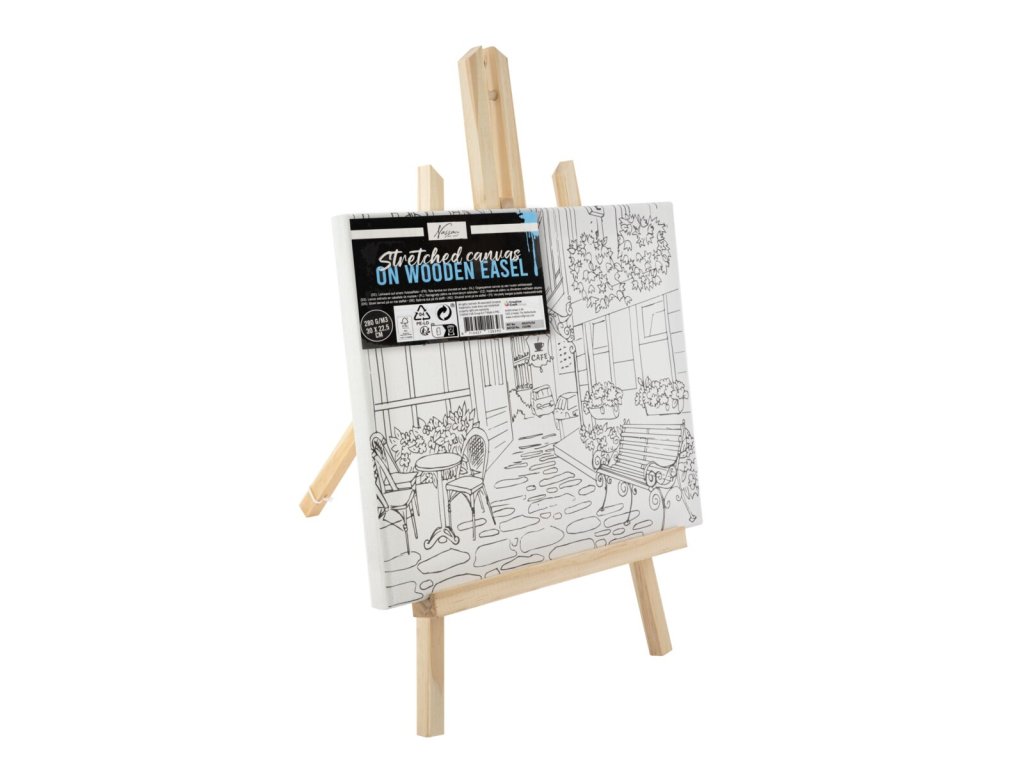 Balení obsahuje: plátno 30 x 22,5 cm s předtištěným motivem, dřevěný stojan