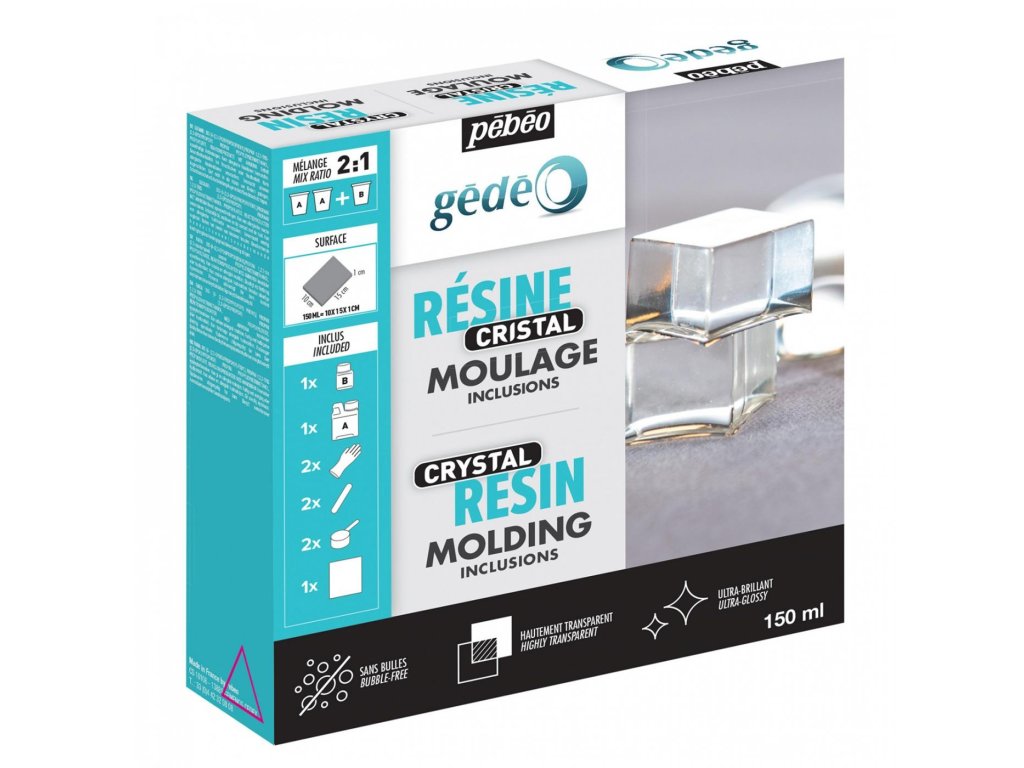 Křišťálová pryskyřice je dvousložková pryskyřice určená primárně k tvorbě odlitků. Nejčastěji je využívána jako perfektní imitace skla, nebo k zalévání menších předmětů. Po 12 hodinách tvrdnutí je možné pryskyřici opatrně vyndat z formy a tvarovat ji. Úplné vytvrdnutí trvá 24 hodin. Po úplném vytvrdnutí je pryskyřice transparentní a pevná. Lze ji pak dekorovat barvami na sklo Pébeo Vitrail.