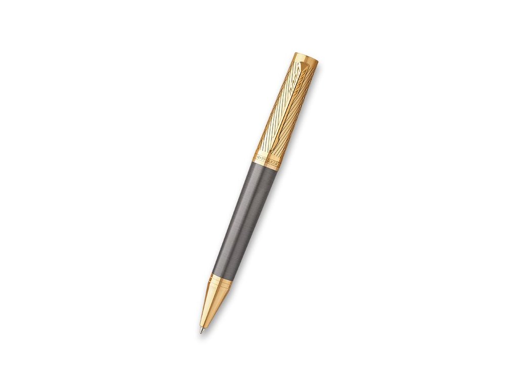 Kuličkové pero Parker Ingenuity Pioneers Collection Arrow GT má mosazné tělo pokryté lesklým šedým lakem. Vrchní část pera s ikonickým vzorem "šípu" vytvořeným chemickým leptáním. V kombinaci s doplňky pozlacenými pomocí techniky PVD.
