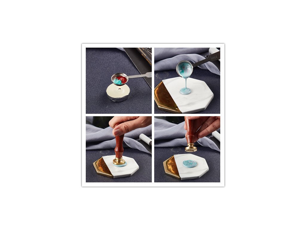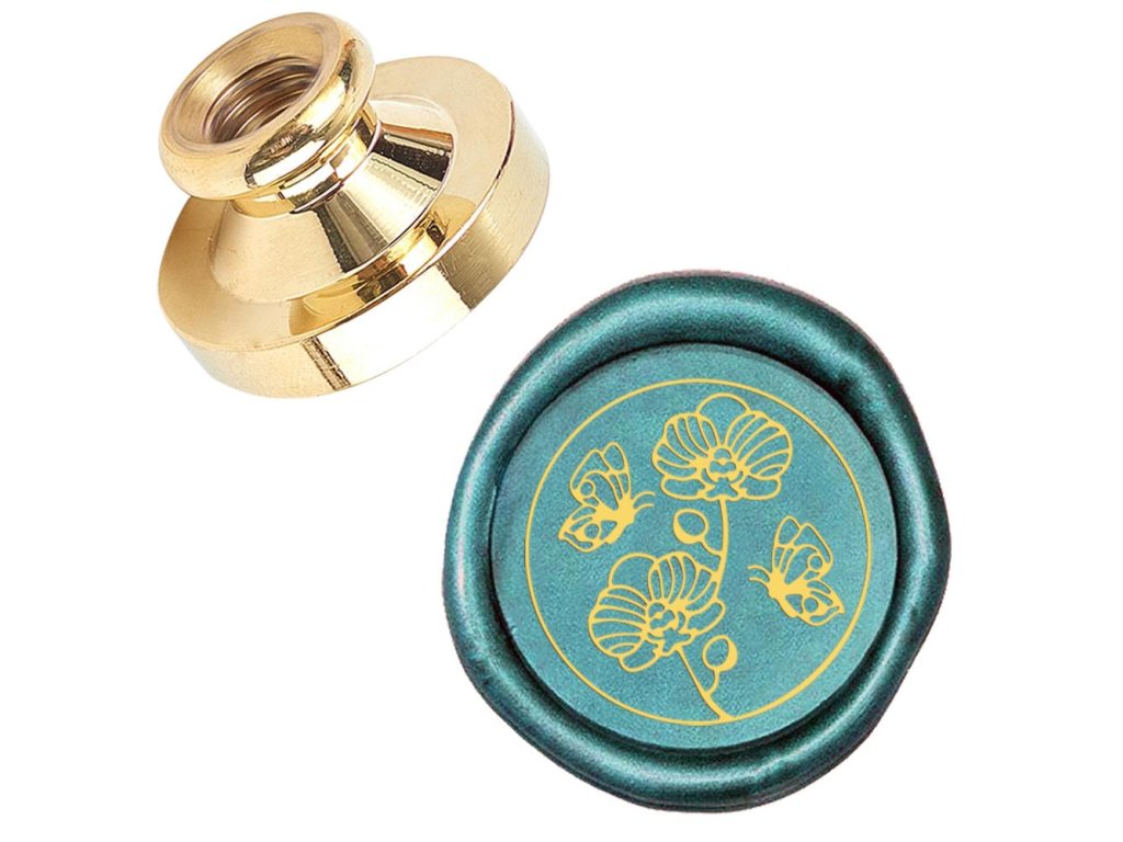 Kovové pečetidlo s dřevěnou ručkou pro práci s pečetními vosky.