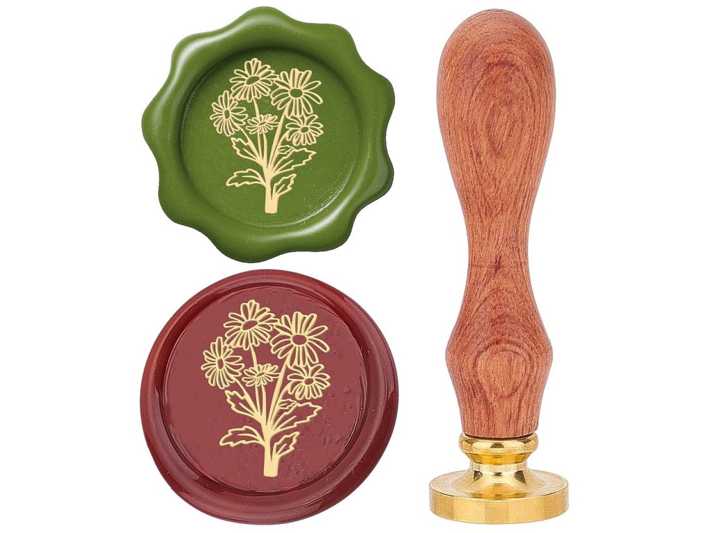 Kovové pečetidlo s dřevěnou ručkou pro práci s pečetními vosky.