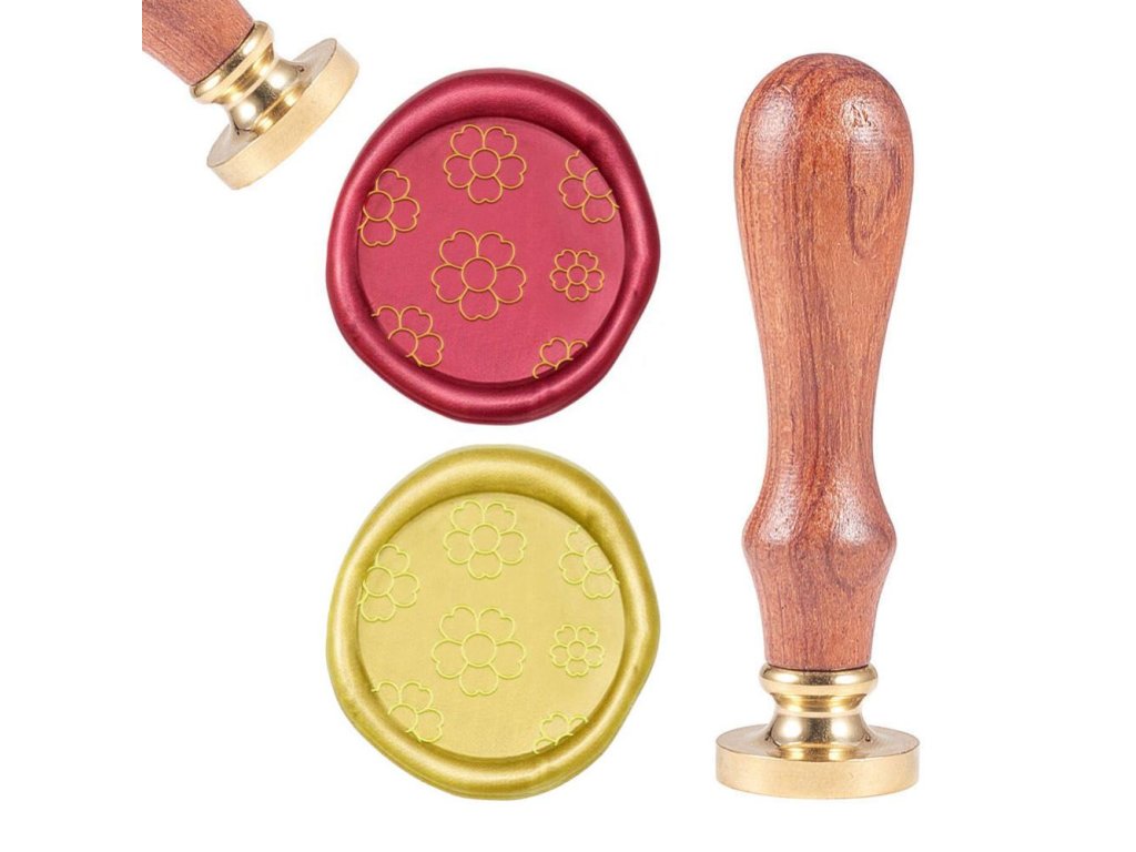 Kovové pečetidlo s dřevěnou ručkou pro práci s pečetními vosky.