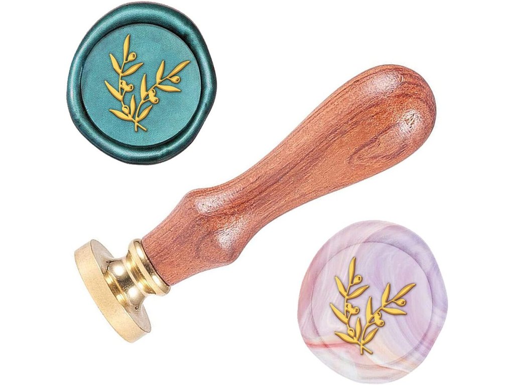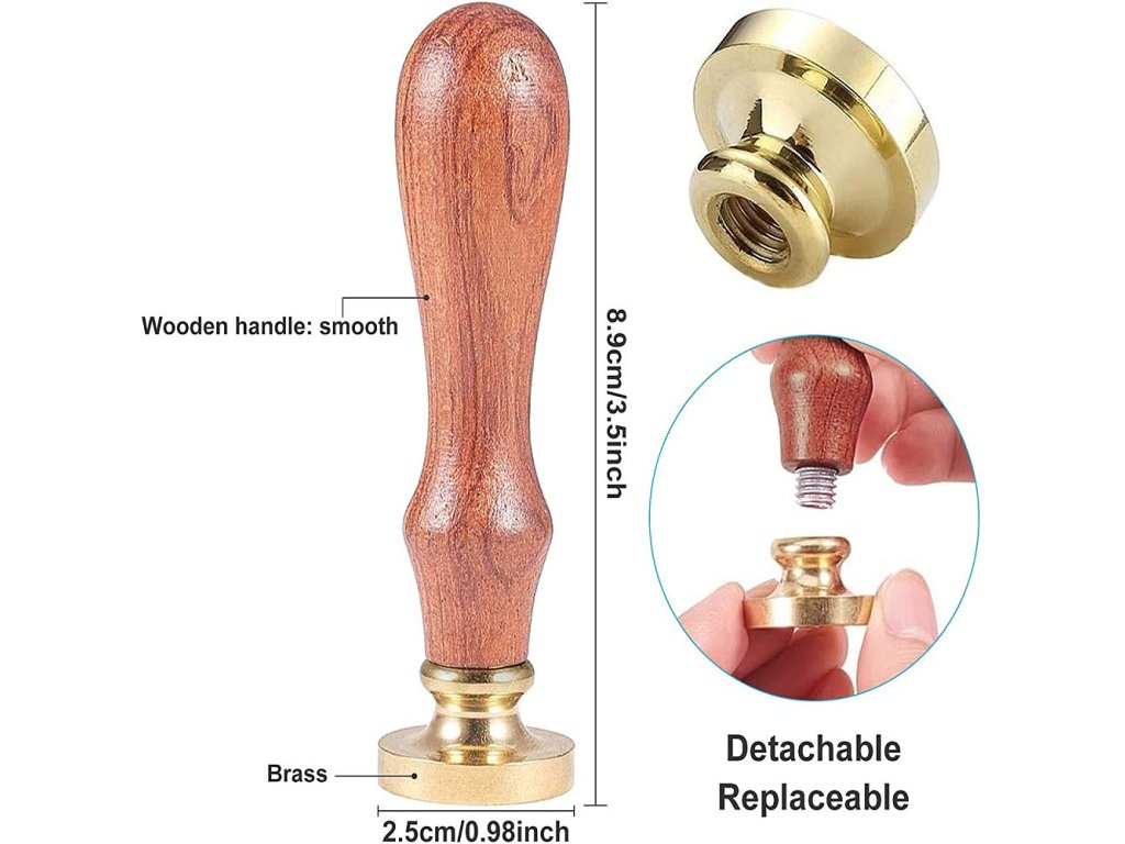Kovové pečetidlo s dřevěnou ručkou pro práci s pečetními vosky.