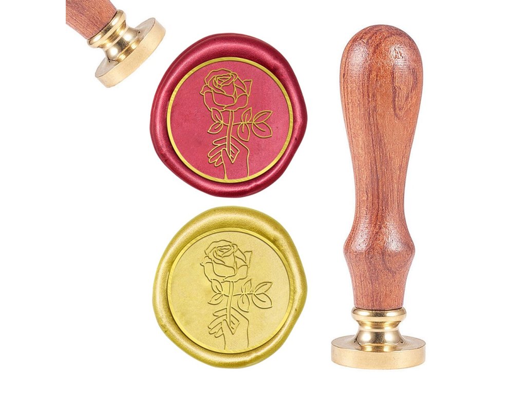 Kovové pečetidlo s dřevěnou ručkou pro práci s pečetními vosky.