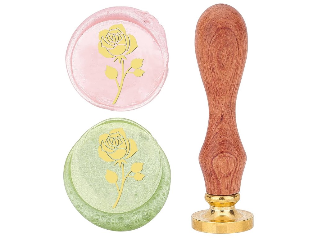 Kovové pečetidlo s dřevěnou ručkou pro práci s pečetními vosky.