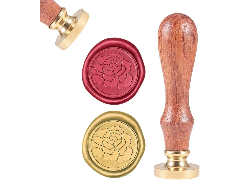 Kovové pečetidlo s dřevěnou ručkou pro práci s pečetními vosky.