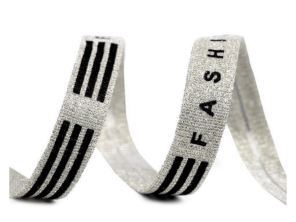 Lurexový lampas s nápisem Fashion stylově dozdobí vaše oděvy. Je jednostranný, velice pevný.