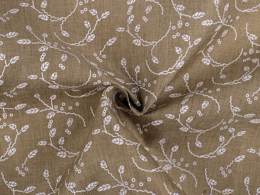 Imitaci juty s potiskem větviček využijete na šití pytlíčků, ubrusů, prostírání nebo běhounů či ke zdobení truhlíků, květináčů apod.