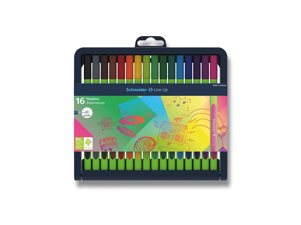 Liner s vláknitým hrotem zapuštěným v kovovém pouzdře. Pogumované trojhranné tělo pro pohodlné psaní, vyrobeno z bioplastu. Ideální pro kreslení i psaní. Víčko a koncovka v barvě náplně. Hrot o šíři 0,4 mm.