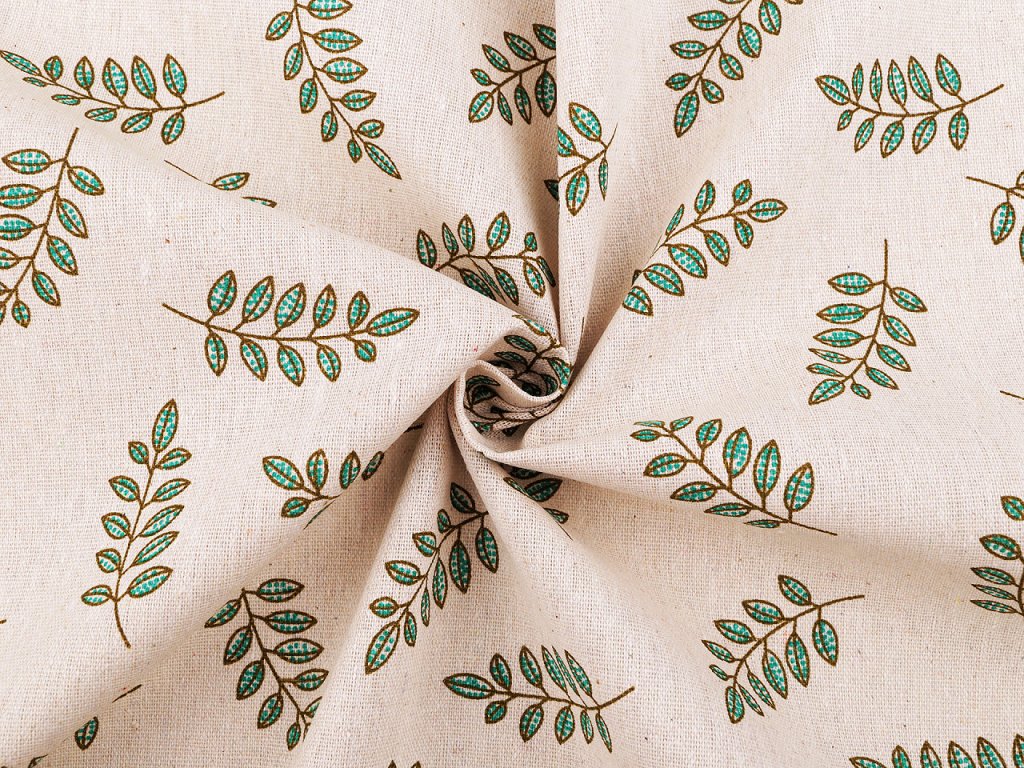 Bavlněnou látku s potiskem listů můžete použít na šití ubrusů, běhounů, prostírání, dekoračních polštářů, dětských teepee apod. Je hrubší a pevná, svou plátnovou vazbou připomíná len.