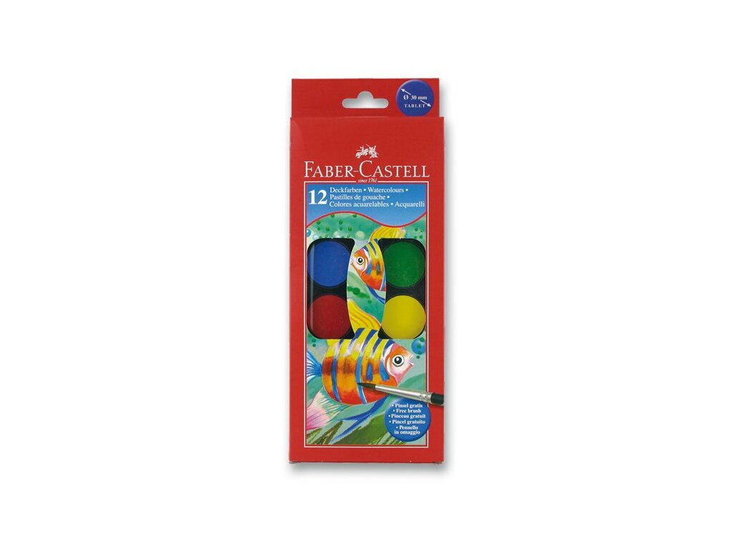 Kvalitní vodové barvy Faber-Castell v praktické plastové paletě - průměr barev 30 mm.