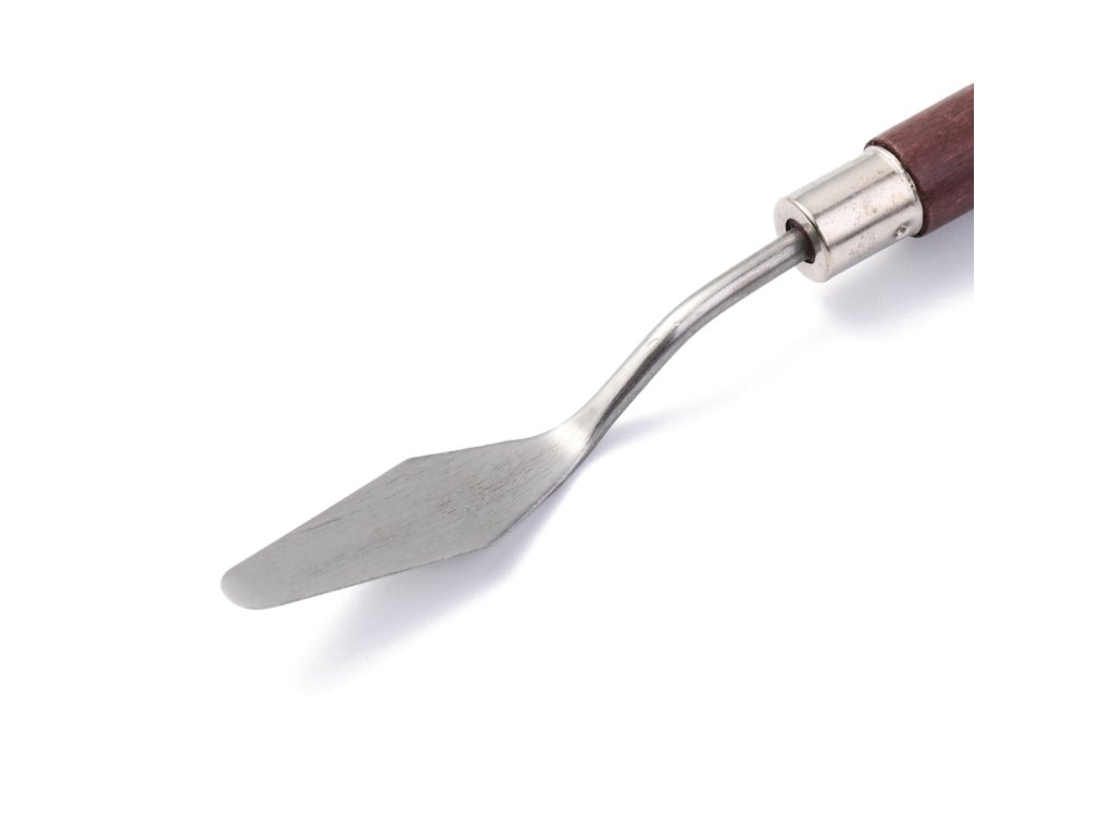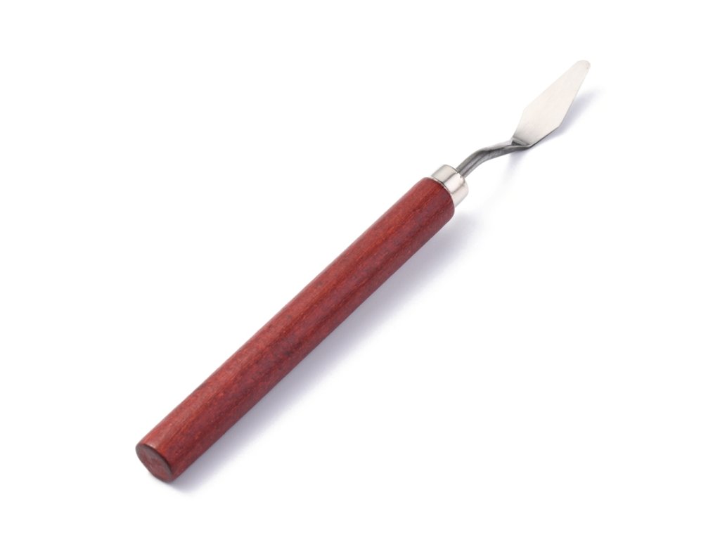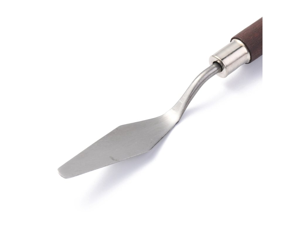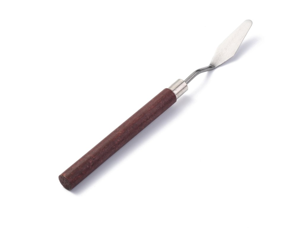 Umělecká špachtle z nerezové oceli s dřevěnou ručkou.