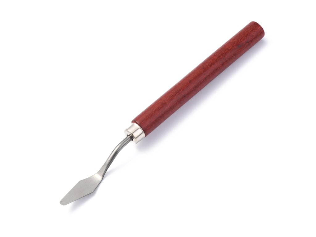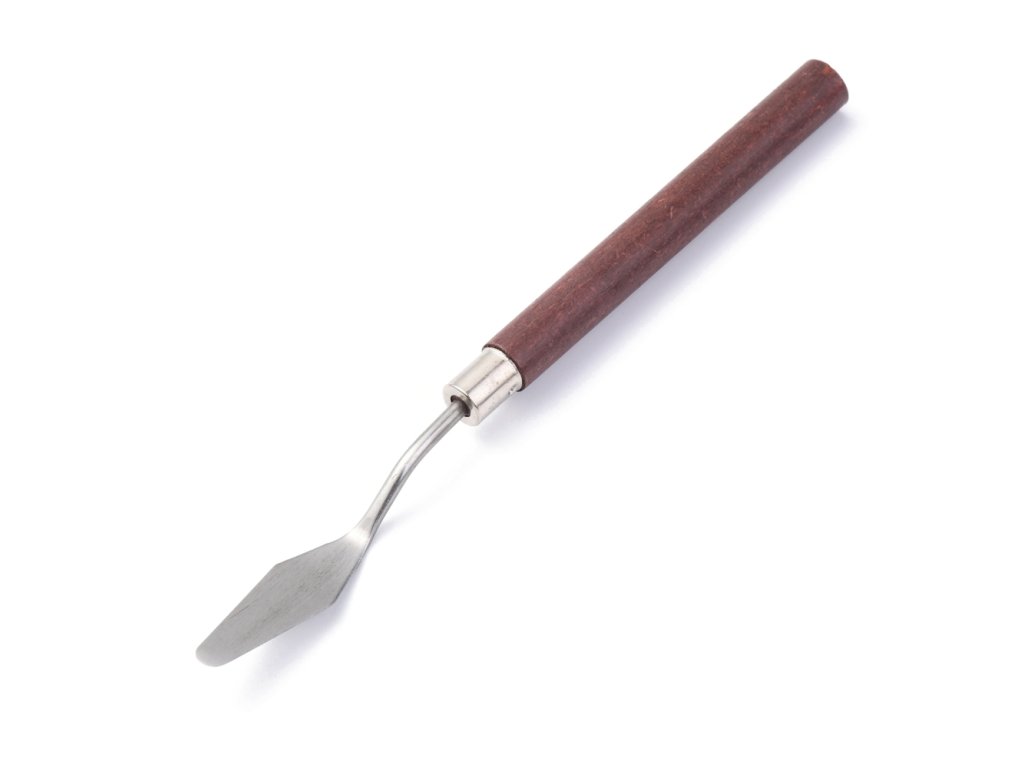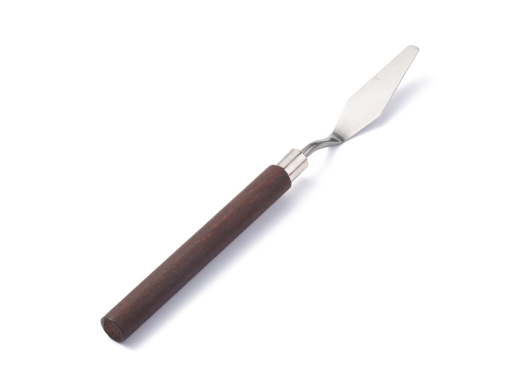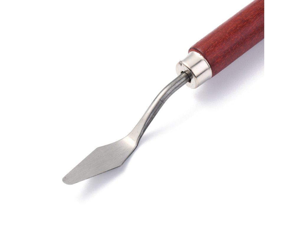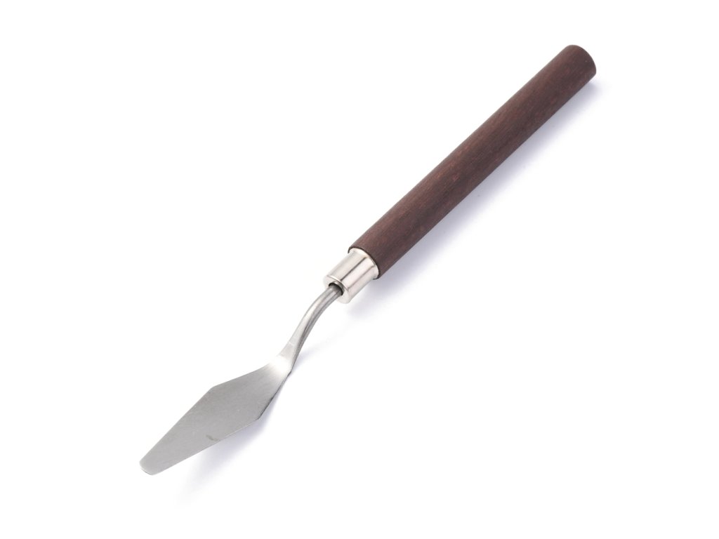 Umělecká špachtle z nerezové oceli s dřevěnou ručkou.