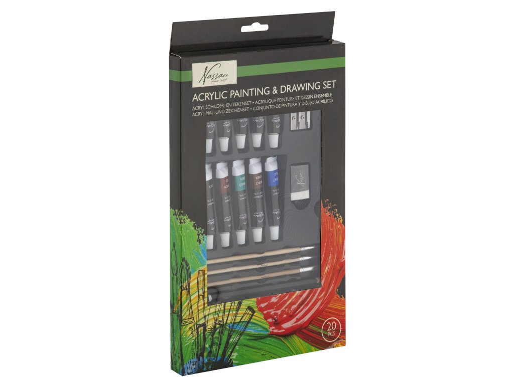 Akrylová sada Nassau 20 dílů – barvy, štětce, paleta