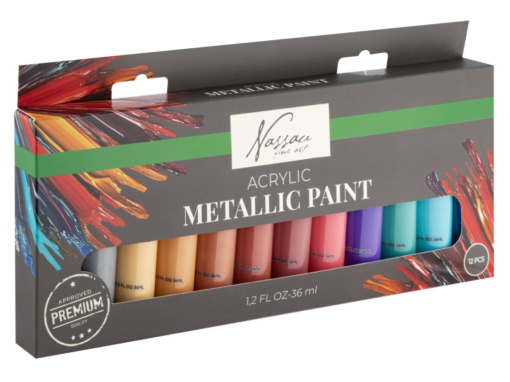Obsahuje: Akrylové barvy 12 x 36 ml metalické. Vhodné pro malování na papír, dřevo, sklo, keramiku, textil, kámen, modelovací hmotu, malířské plátno, malování na kameny apod. Pro získání více barevných odstínů můžete barvy vzájemně míchat. Dají se ředit vodou.