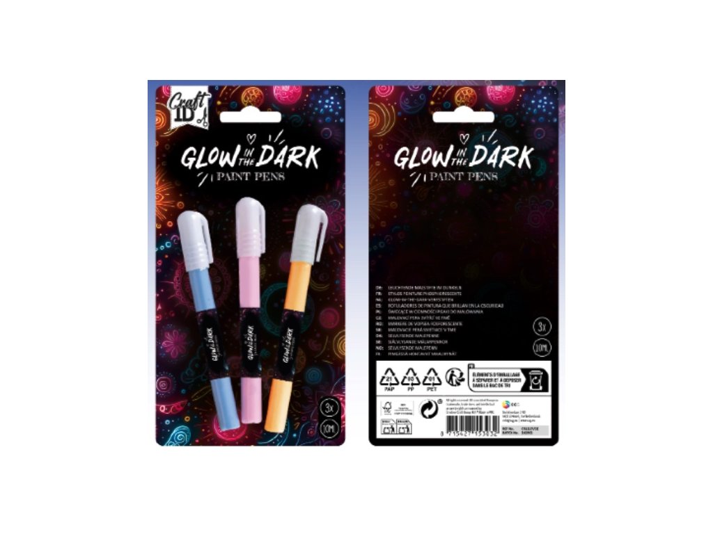 Fixy svítící ve tmě, 3 ks - oranžová, modrá, růžová