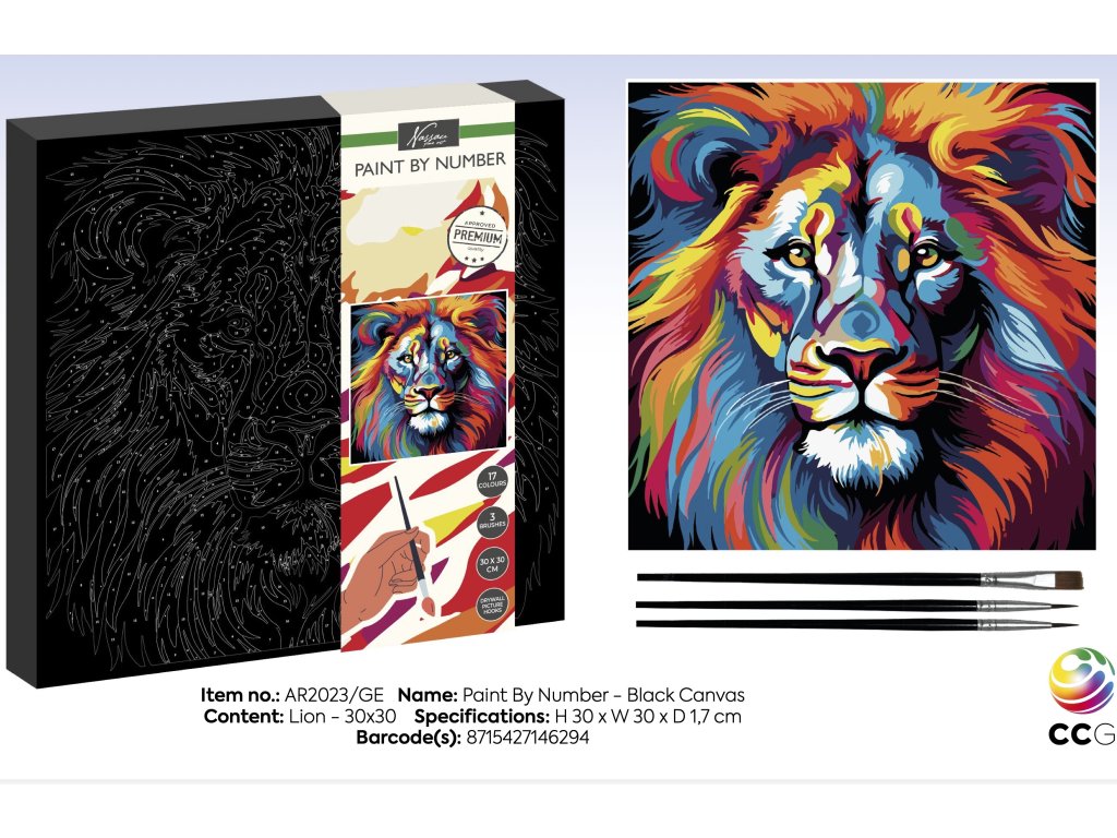 Malování podle čísel 30 x 30 cm černé plátno lev