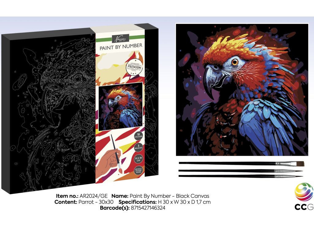 Malování podle čísel 30 x 30 cm na černé plátno - papoušek