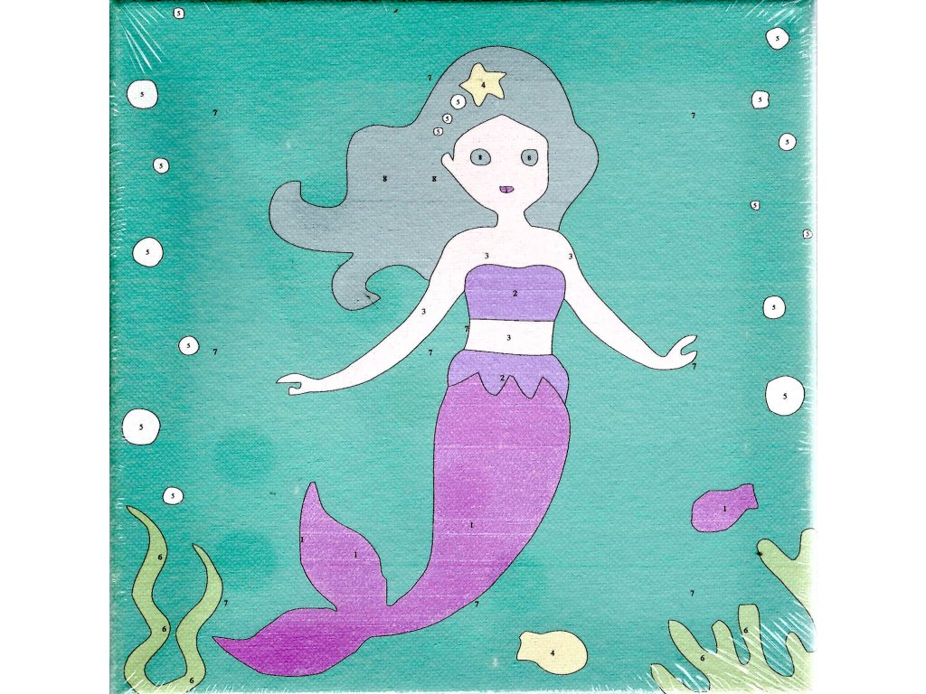 Malování podle čísel na plátno na dřevěném rámu 20x20cm -Mořská panna
