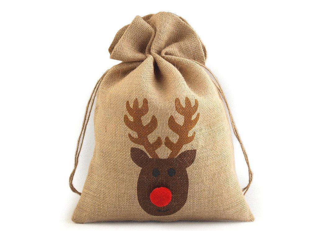 Jutový pytlík se sobem nadchne nejen děti, ale i dospělé. Pytlík zaujme především malbou a bambulkou místo nosu. Stahuje se pomocí jutového provázku. Můžete jej použít na dárky nebo naplnit dobrotami na Mikuláše.