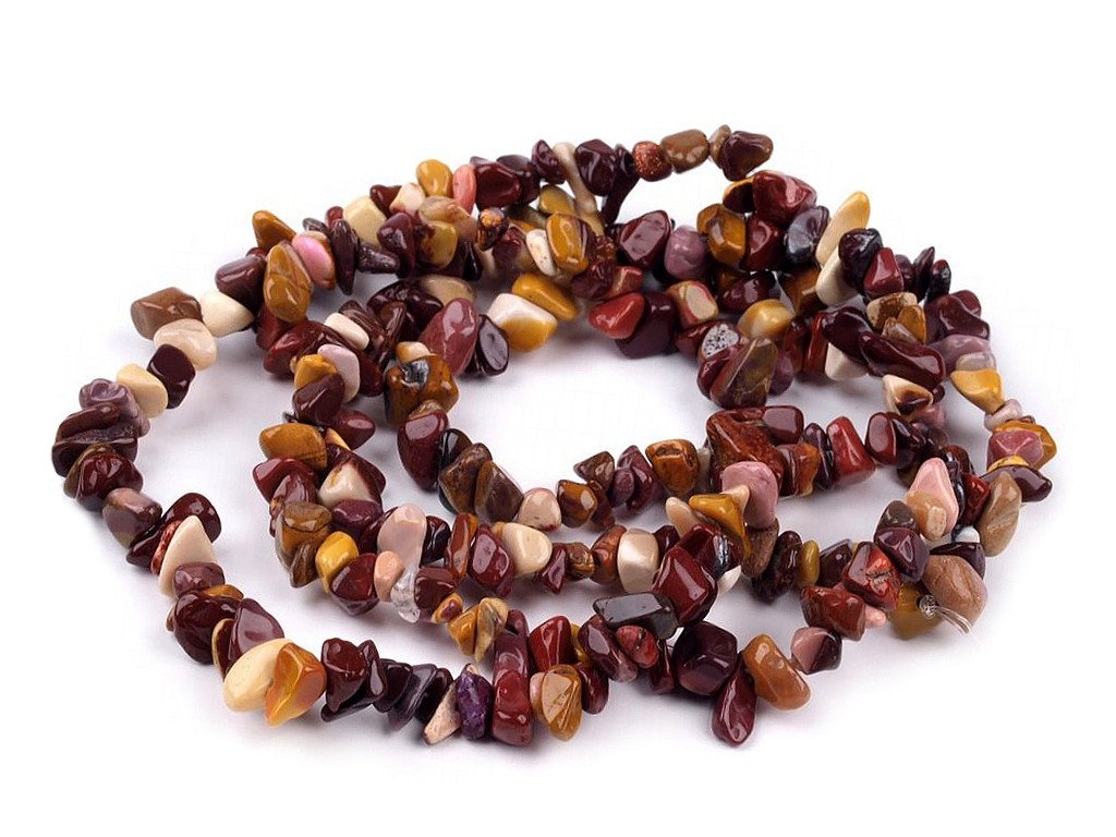 Zlomky přírodních minerálů jsou jedny z nejvariabilnějších bižuterních prvků. Jaspis mookait je jedinečný svou barevnou kresbou. Tyto korálky jsou jedním z našich hitů, což je dáno jejich kvalitou a velmi příznivou cenou.