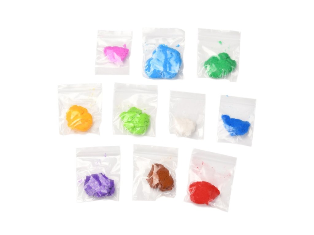 - 10x barevná plastelína: cca 8 x 6 x 0,6 cm