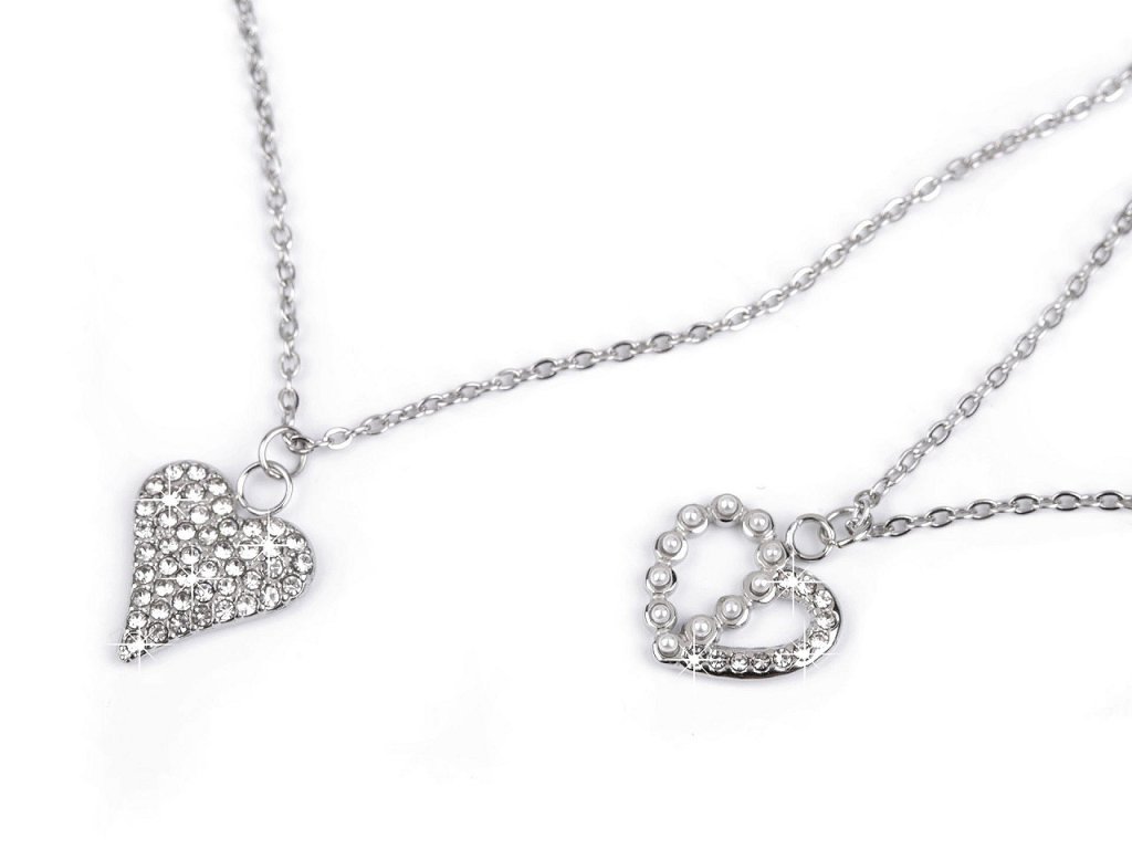 Náhrdelník z nerezové oceli s broušenými kamínky srdce
