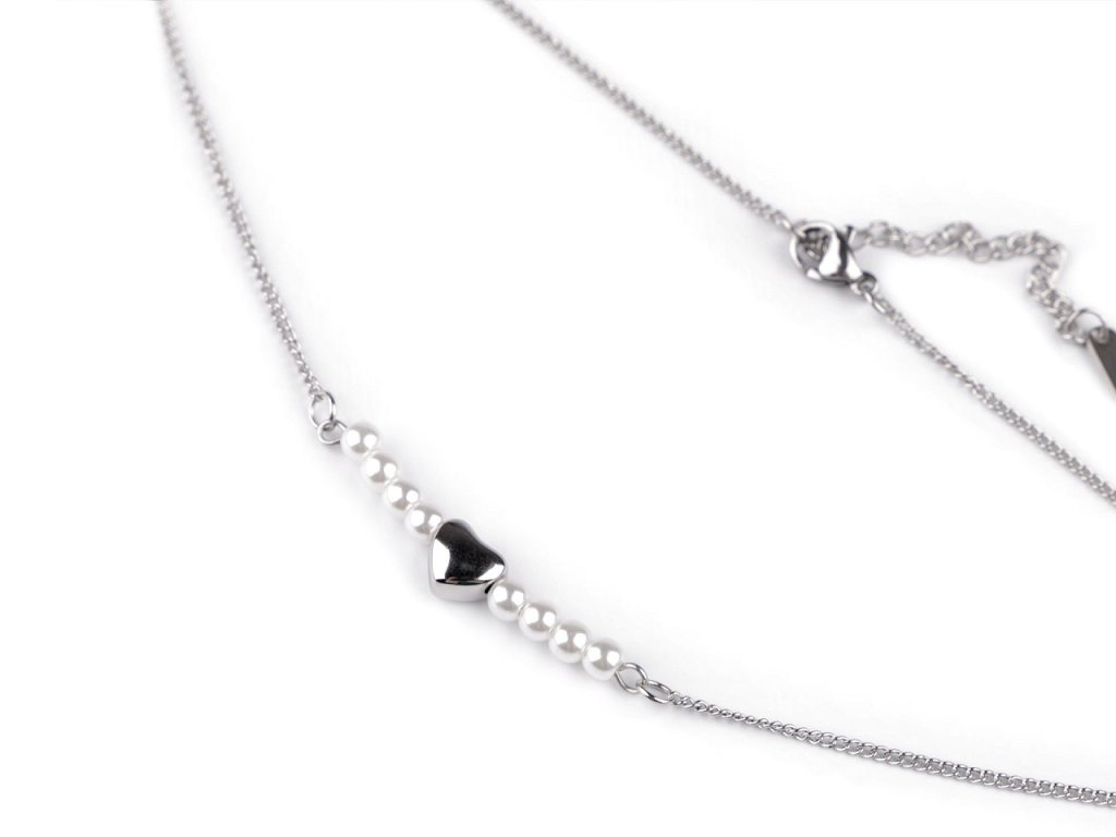 Náhrdelník se srdcem a perlami je vyrobený z kvalitní nerezové oceli. Je velice elegantní, hodí se na všední nošení i ke slavnostním příležitostem. Romanticky a decentně dozdobí většinu outfitů. Náhrdelník se zapíná na karabinku s prodlužovacím řetízkem.