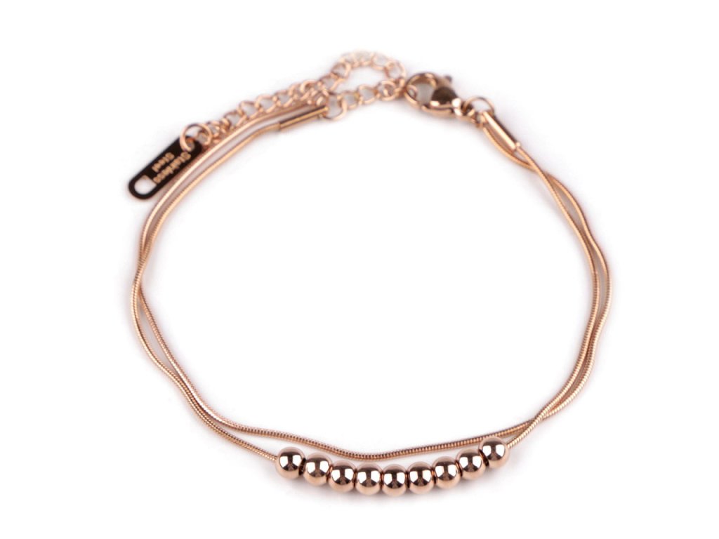 Dvouřadý hadí náramek je vyrobený z kvalitní nerezové oceli. Je ozdobený malými kulatými korálky s vysokým zrcadlovým leskem. Detailní zpracování a jednoduchý design z něj činí dokonalý módní doplněk pro jakoukoliv příležitost.