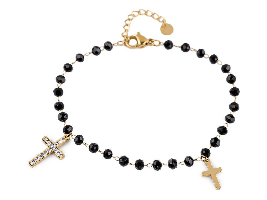 Náramek z nerezové oceli s křížky je doplňkem, který přitáhne pozornost. Jemně broušené korálky v kombinaci se zářivým kovovým leskem vytvářejí sofistikovaný vzhled.