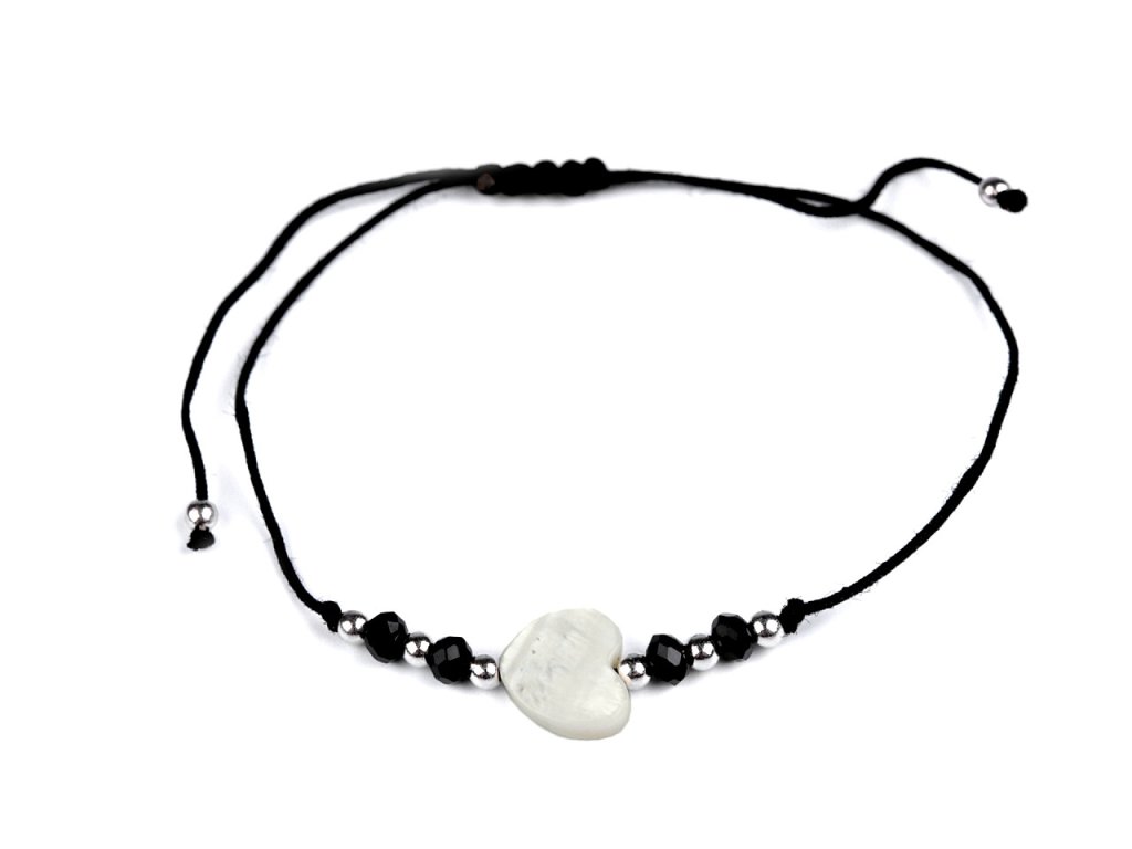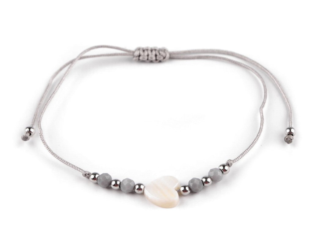 Na šňůrky je doprostřed navlečené srdíčko velké 1 cm, broušené a kovové korálky.
