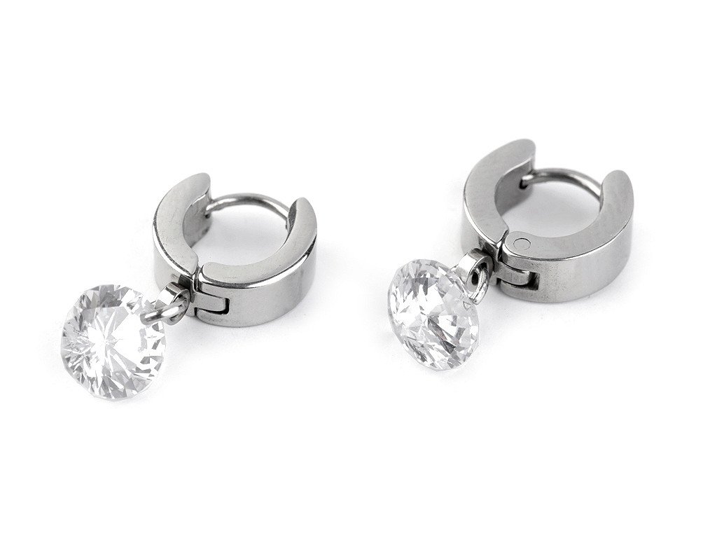 [Náušnice z nerezové oceli jsou zajímavé svým designem. Jejich jednoduchost doplňuje broušený skleněný kamínek. ]