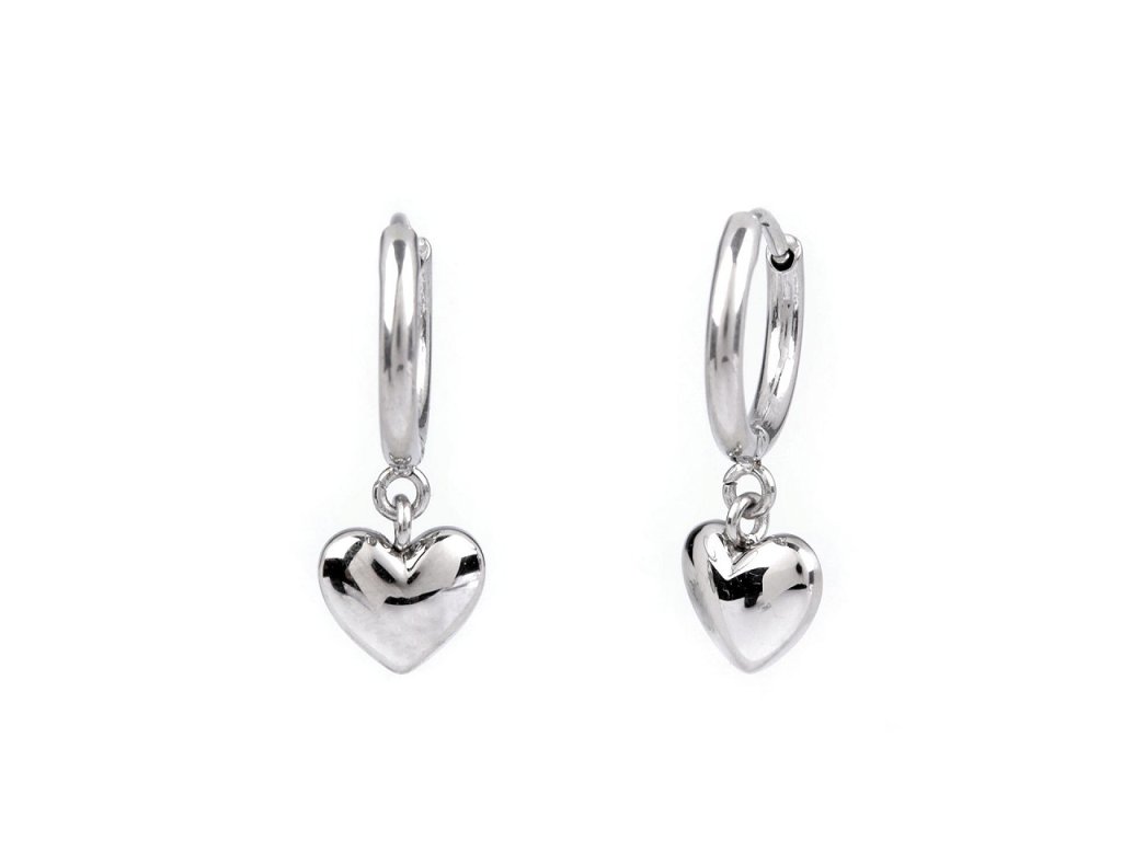 Kvalitní náušnice kroužky z nerezové oceli jsou velice elegantní a decentní. Dole jsou ozdobené přívěskem srdíčka. Oceníte je ke každodennímu nošení, ale hodí se i ke slavnostním příležitostem. Skvěle doplní byznys styl oblékání, jeansovou módu, ležérní outfity i společenské šaty.