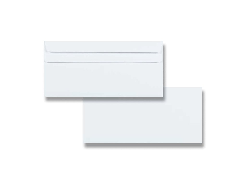 Samolepicí bílá obálka formátu DL, 80 g, rozměry 220 × 110 mm - pro A4 přeloženou na třetiny. Cena za 1 kus.