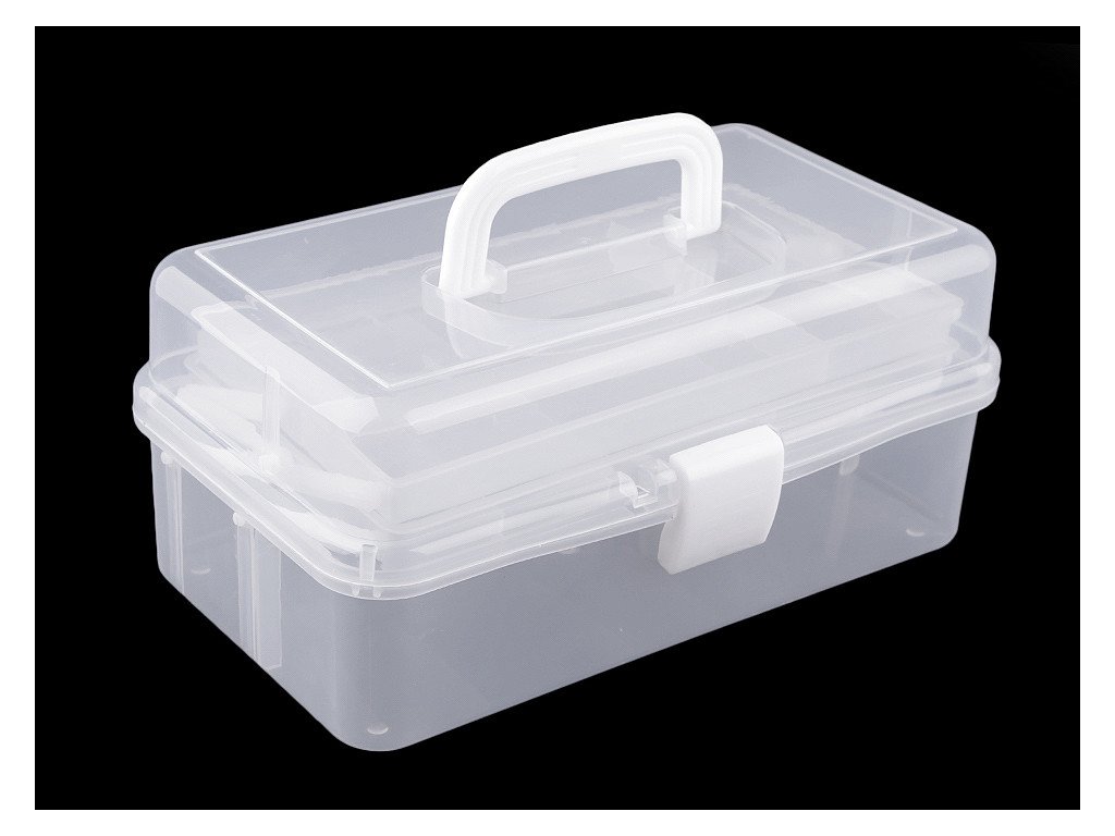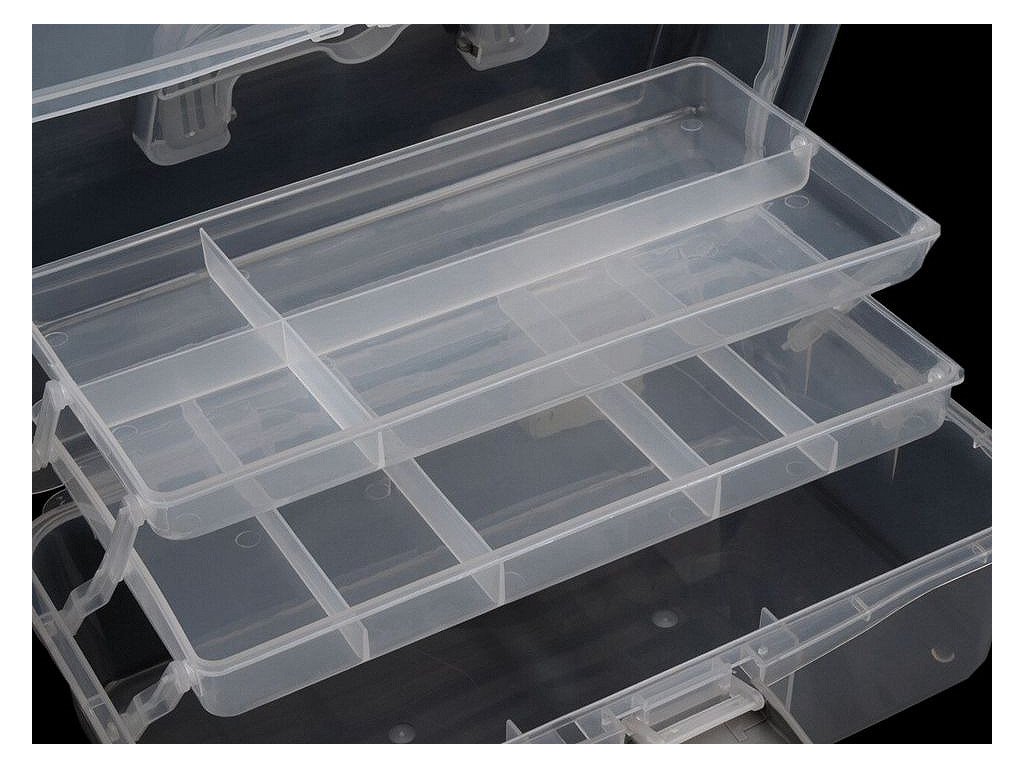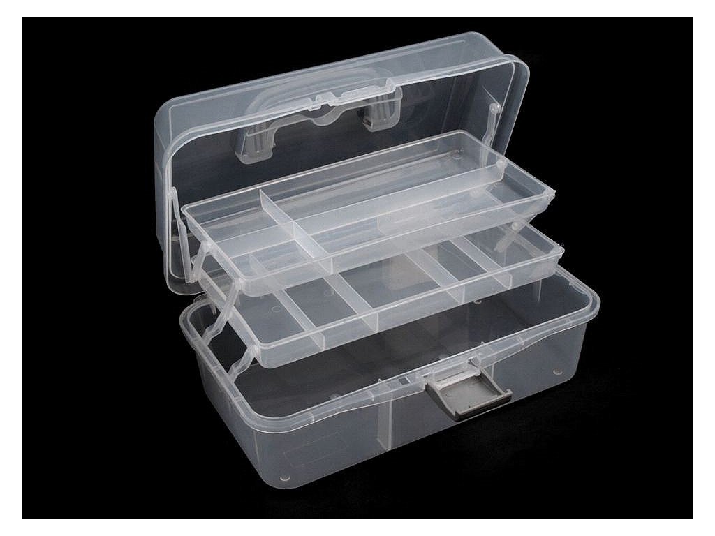 Velmi praktický pomocník při vašem skladování potřebných korálků a dalších komponentů pro kreativní tvorbu. Zásobník je vyroben z plastu, má jednoduché pákové uzavírání a rukojeť. Pořadač je možné rozložit tak, abyste měli dvě přihrádky celé otevřené. Pod přihrádkami je ještě dostatečný prostor na pomůcky. Příklopné víko chrání vše před prachem. Vnější rozměry: 150 mm výška, 200 mm šířka, 330 mm délka, přihrádky jsou velké 145 x 280 mm. Vnitřní rozměry: první přihrádka je rozdělena na 4 díly (2 okna velká 205 x 70 mm, 2 okna velká 70 x 70 mm), druhá přihrádka je rozdělena na 5 dílů (1 okno velké 80 x 145 mm, 2 okna velké 45 x 145 mm, 2 okna velká 50 x 145 mm).