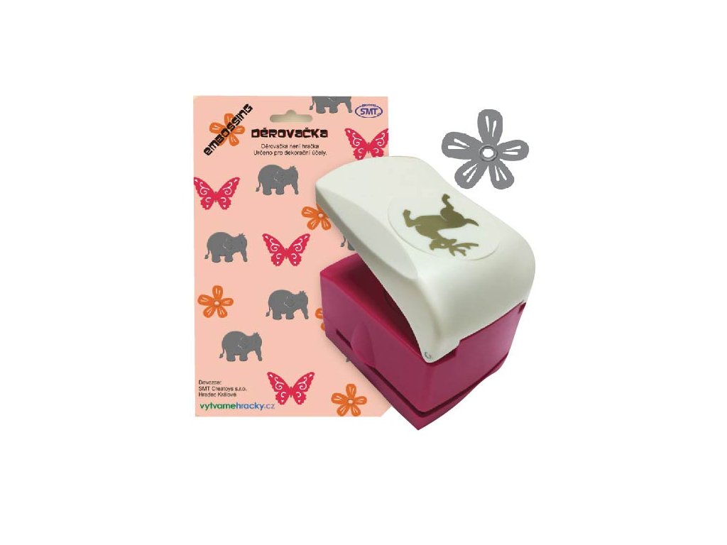 Děrovačka pro výtvarnou tvorbu. Velikost výseku 52 mm. Postup: 1. pracujte s děrovačkou na pevné a rovné ploše. 2. vložte papír vhodné tloušťky - 160-240 g/m2 a zatlačte na páku statickým tlakem. Nikdy ne úderem na páku. 3. po proděravění opatrně vytáhněte zbylý papír. 4. POUŽÍVEJTE POUZE NA PAPÍR. Děrovačky nikdy nepoužívejte na materiály potažené lepící vrstvou (například na samolepicí štítky), na pěnovku, na papírové ubrousky. 5. raznici lze ostřit slabou hliníkovou folii a mazat voskovým papírem. Děrovačky nejsou vhodné pro děti do 3let.