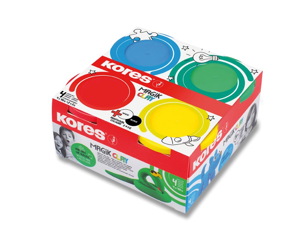 Lehká na vzduchu tvrdnoucí modelovací hmota Kores Magik Clay v základních barvách. Snadno míchatelné barvy, díky nimž dosáhnete krásných nových odstínů a barev. Hmota uzavřená v kelímku nevysychá a je dlouho dobře tvarovatelná. ,Ideální pro zlepšení motoriky a posílení kreativního myšlení. Obsah 4 x 40 g.